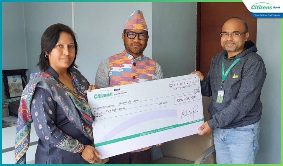 काठमाण्डौ । सिटिजन्स बैंक इन्टरनेसनल लिमिटेडले करिब एक दशक देखि एचआईभी संक्रमित अबोध बालबालिकालाई लालनपालन,स्वास्थ्यउपचार,शिक्षा,मनोरंजन प्रदान गर्दै आएको बेबीलाईफ होमलाई आर्थिक सहयोग स्वरुप २ लाख रुपैयाँ प्रदान गरेको छ ।