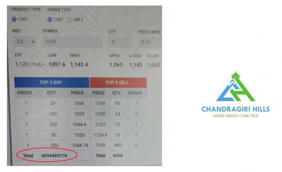 बिहीबार कारोबार खुलेको ५ मिनेटभित्र कम्पनीको चुक्तापुँजीभन्दा ३० गुणा बढी अर्थात ४ अर्ब २९ करोड कित्ता सेयर माग भएको मार्केट डेप्थमा देखिएको थियो । कारोबारको सुरुवातमै यस्तो अस्वभाबिक माग देखिएपछि लगानीकर्ताहरुले नेप्सेले सञ्चालनमा ल्याएको ट्रेड म्यानेजमेन्ट सिस्टमको प्रमुख भेण्डर कम्पनी वाइकोमाथि चन्द्रागिरी हिल्सको सेयरमा चलखेल गरेको संगीन आरोप लगाएका छन् ।