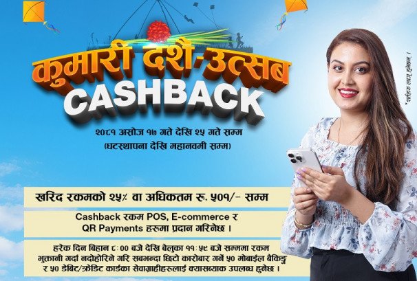 काठमाण्डौ । कुमारी बैंक लिमिटेडले नयाँ वर्ष विस २०८१ को उपलक्ष्यमा विशेष क्यासब्याक अफर घोषणा गरेको छ । यस योजनाअन्र्तगत पिओएस भुक्तानी र अनलाइन कारोबारका लागि कुमारी बैंकको डेबिट वा क्रेडिट कार्ड प्रयोग गर्ने ग्राहकहरूले २०८१ रुपैयाँ वा कारोबार रकमको २५% जुन रकम न्यून हुन्छ, उक्त रकम फिर्ता पाउने छन् ।साथै, क्यूआर. भुक्तानीमार्फत कारोबार गर्ने मोबाइल बैंकिङ प्र...