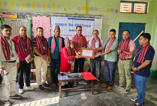 काठमाण्डौ । माछापुच्छ्रे बैंकले कर्णाली प्रदेशको सुर्खेत जिल्लास्थित शारदा नपा–१५, माल्नेटामा रहेको त्रिभुवन जन माध्यामिक विद्यालयमा खानेपानी पूर्वाधार निर्माण गरि हस्तान्तरण गरेको छ । बैंकले आफ्नो सामाजिक उत्तरदायित्वअन्र्तगत जेठ १६ गते बुधबार विद्यालयमा आयोजित एक औपचारिक समारोहका बीच उक्त खानेपानी सुविधाको हस्तान्तरण गरेको हो ।  विद्यालय सञ्चालनका लागि अति...